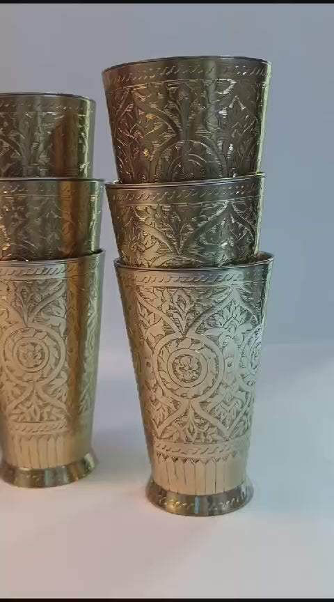 Antique Brass Jug & 6 Glasses Set – Handcrafted Elegance